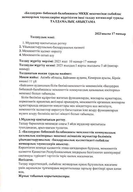 « Балдәурен » бөбекжай балабақшасы МКҚК бойынша сыбайлас жемқорлыққа қарсы стенд әзірленді