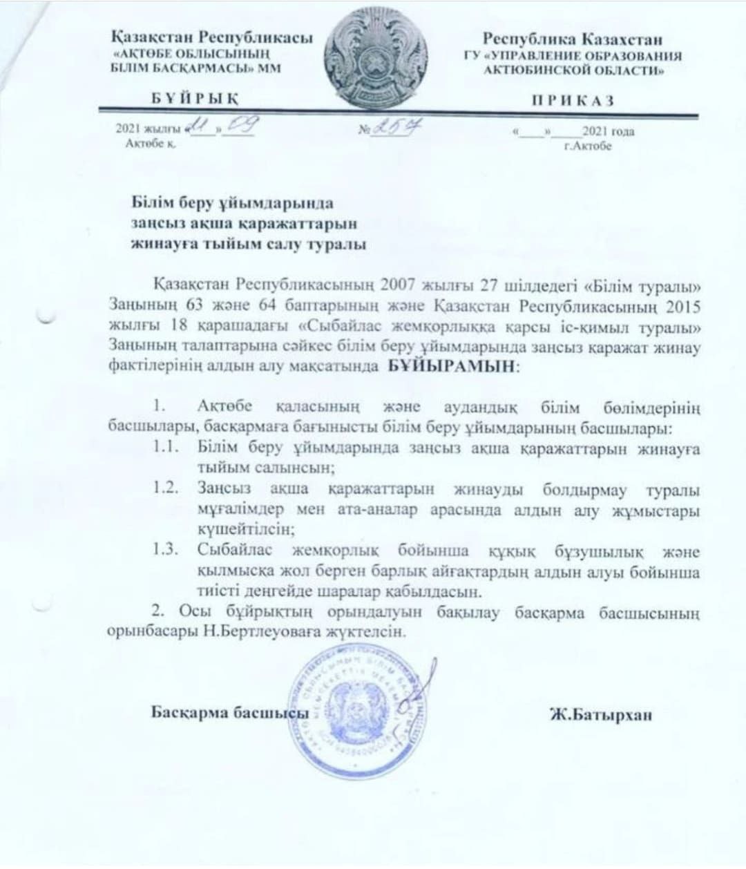 | 1 | Сыбайлас жемқорлыққа қарсы іс-қимыл туралы заң | docx |